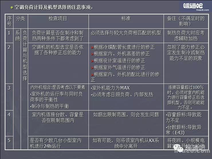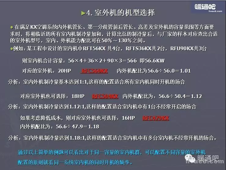 在做設(shè)計時,必須認(rèn)真了解用戶的需求,對于不全開的場所可以適當(dāng)超配,但外機能力必須滿足常開房間的能力需求,而且超配比例不能超過110%(由于回油問題除霜等原因內(nèi)外機能力配比不能低于80%),對于同一個多聯(lián)機系統(tǒng)內(nèi)的所有內(nèi)機全開的系統(tǒng)是**不能超配設(shè)計,以免影響客戶正常使用。一個多聯(lián)機系統(tǒng)所配的絕大部分內(nèi)機都在36KW以下,其系統(tǒng)**不能超配。