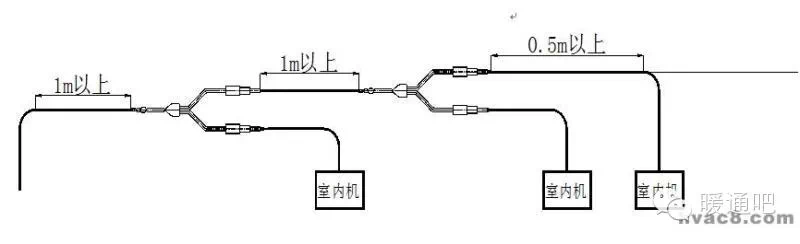 C.分歧管后連接室內(nèi)機的水平直管段距離應(yīng)≥0.5m。