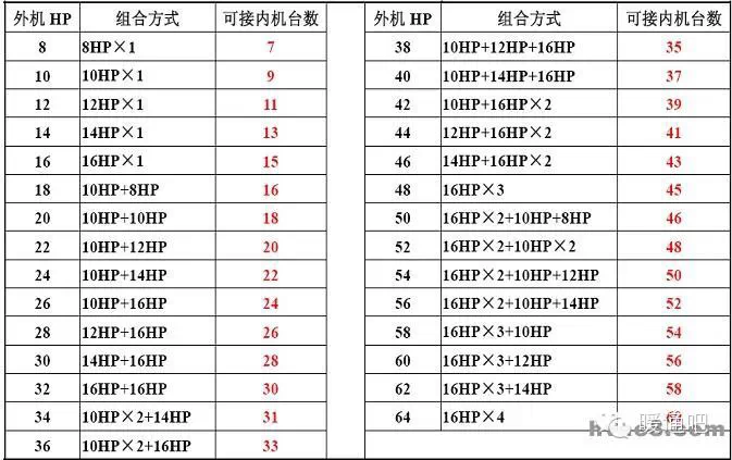 1.不同匹數(shù)的室外機所對應(yīng)的室內(nèi)機臺數(shù);