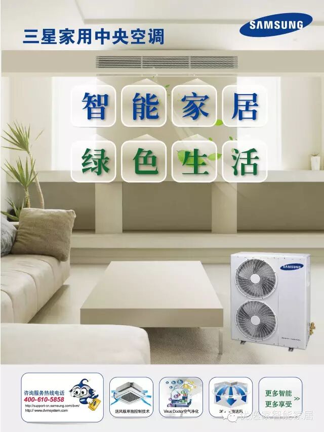 6、家用中央空調出風很溫和,波動小,并且可以從不同角度散發熱量(或冷氣),**克服了分體式壁掛和柜式空調對居室分割的局部處理和不均勻的空氣氣流等問題。